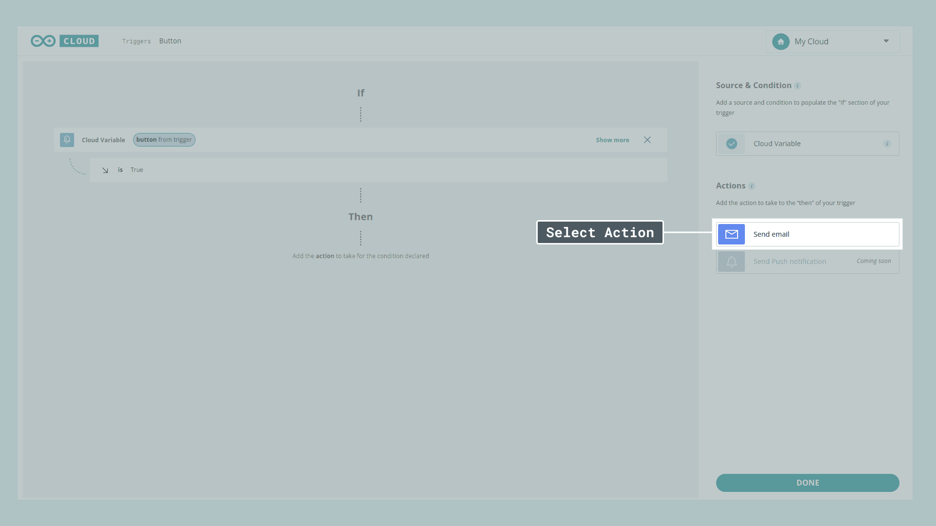 Triggers react to certain conditions inside your Arduino Cloud Thing, such as a boolean being true, or a string being assigned a value. As soon as a set condition is met a notification gets triggered and sent to you. This is useful when you monitor data and you need to know about any change as soon as it happens. This could be anything from different values in environmental monitoring or security-related information such as movement detection.