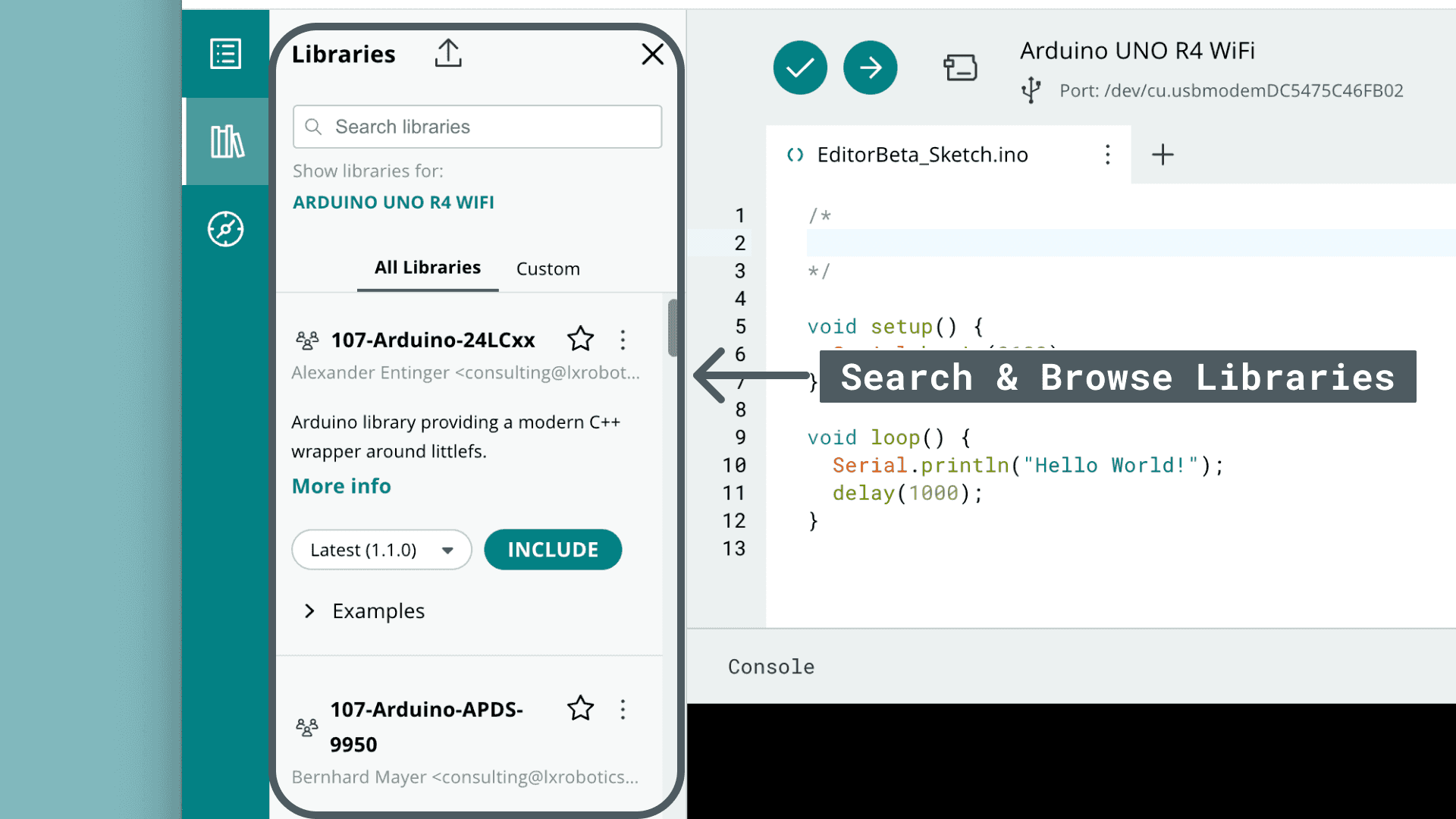 3. Libraries - all libraries that are included in the Arduino library manager (5000+).