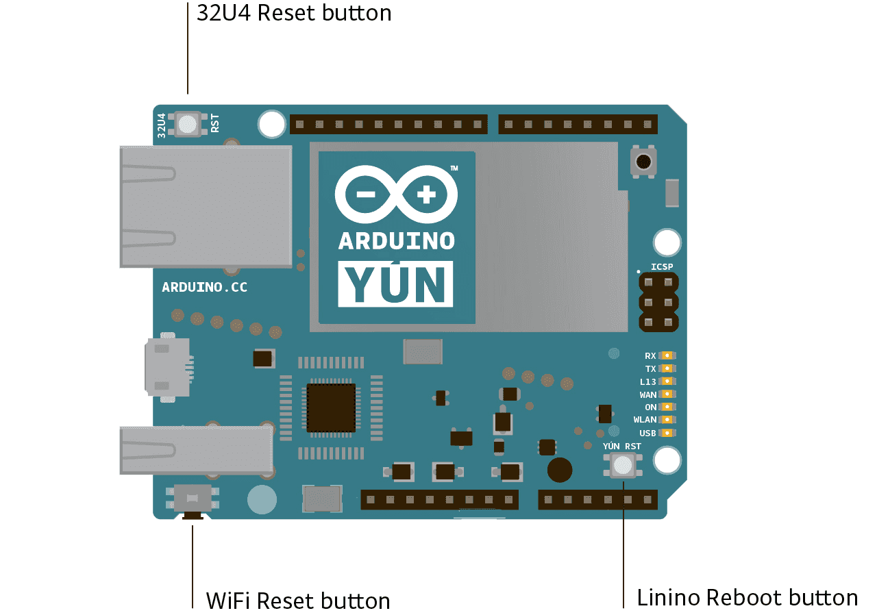 . It is reserved for communication with the AR9331 processor.The Yún also has a WiFi module built on board, allowing it to connect to a wireless router, or act as an access point.