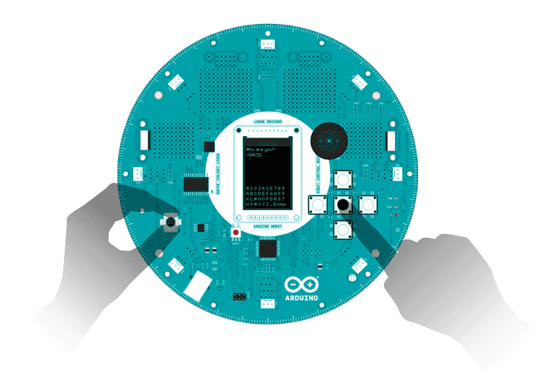 The Arduino Robot comes with a preloaded application that will ask for your name, what you want to name the robot, and where you are located. Look at the screen on the robot for information on how to input your information using the buttons and potentiometer.