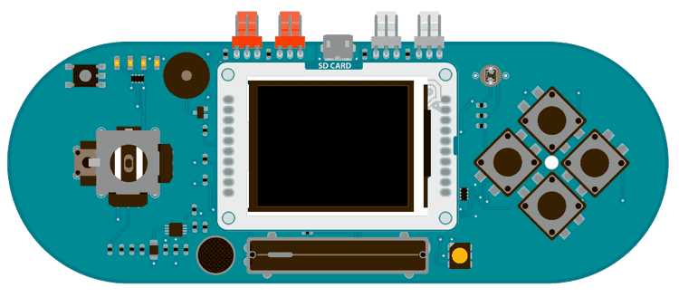 The screen's pin layout is designed to easily fit into the socket of an Arduino Esplora and Arduino Robot, but it can be used with any Arduino board.