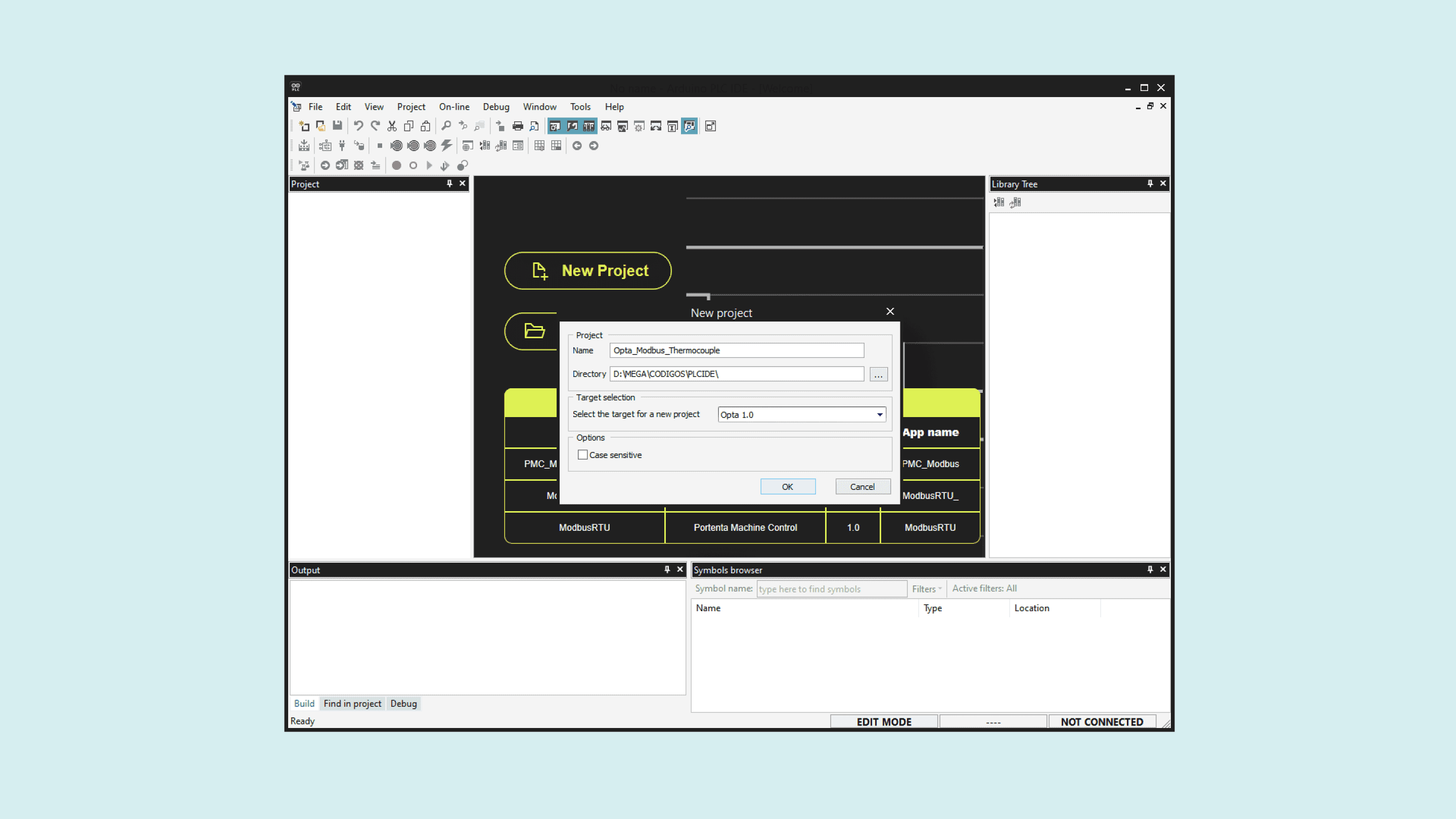 Now the server is configured, create a new project, this time for the Opta™ micro PLC that will be the Client or Master.