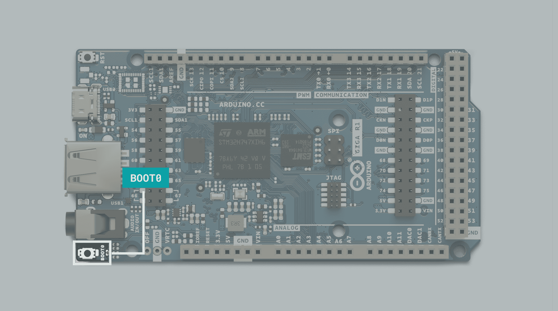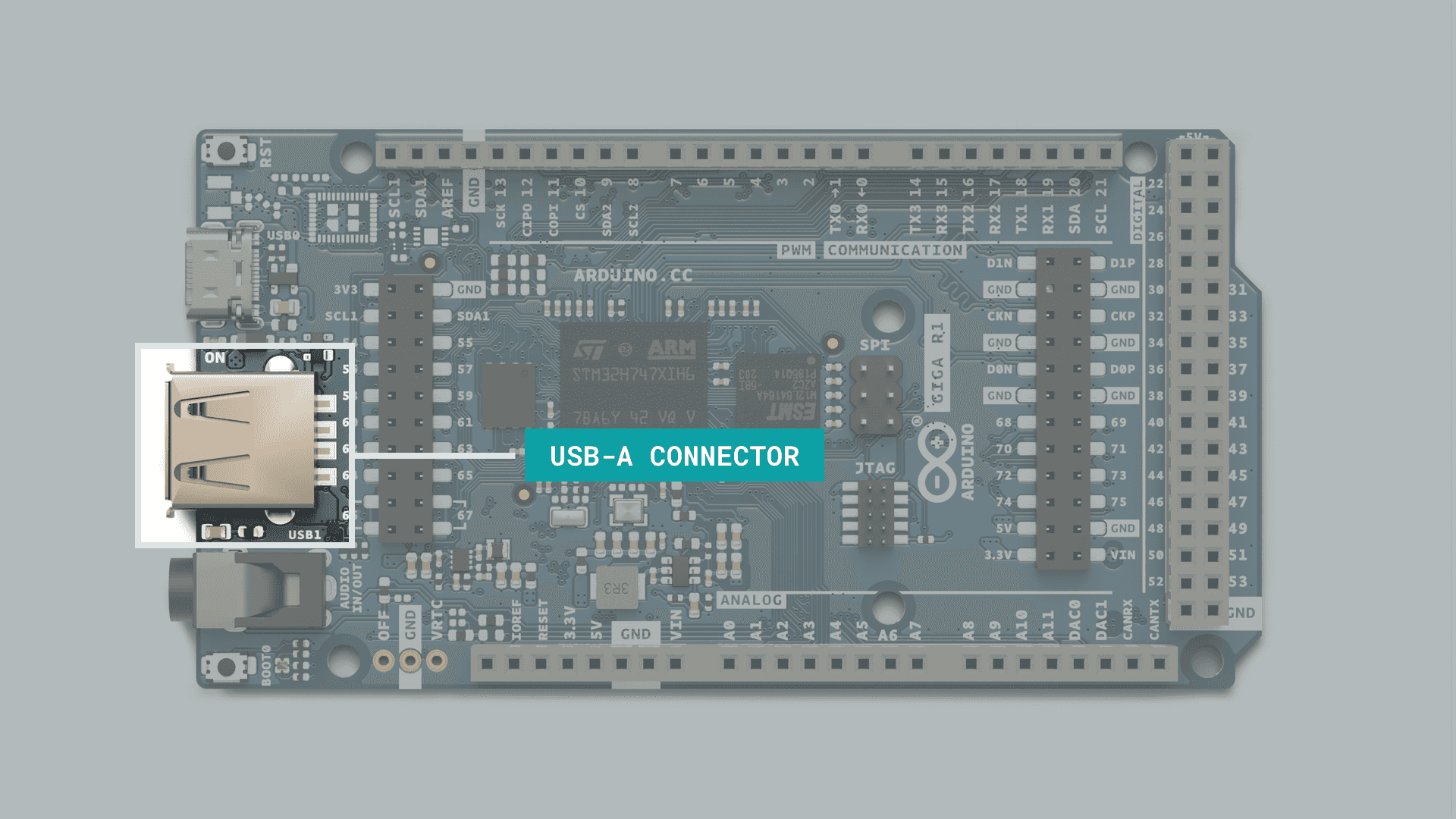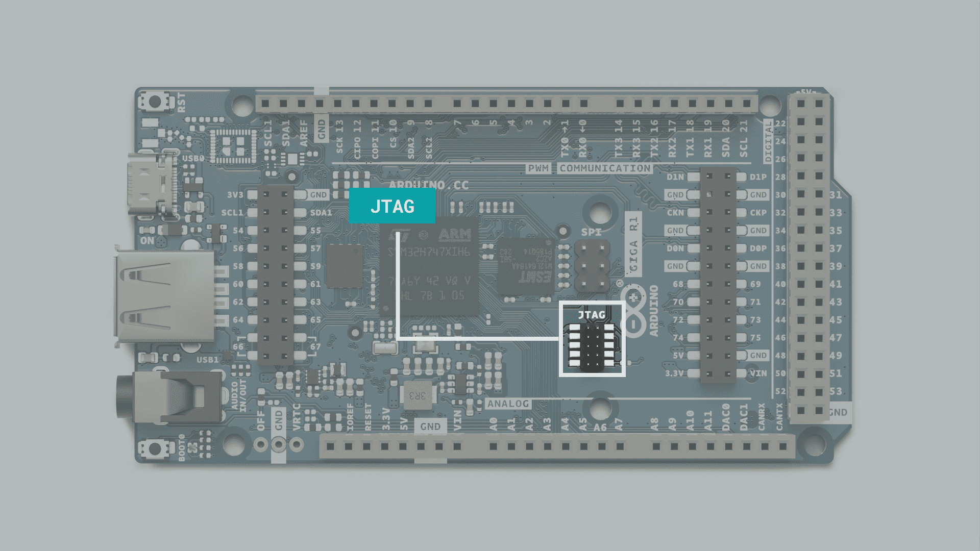 The GIGA R1 features the powerful dual core STM32H747XI microcontroller found on the Arduino PRO family's Portenta H7 board, but in a form factor accessible to any maker who has tinkered with an Arduino board before.