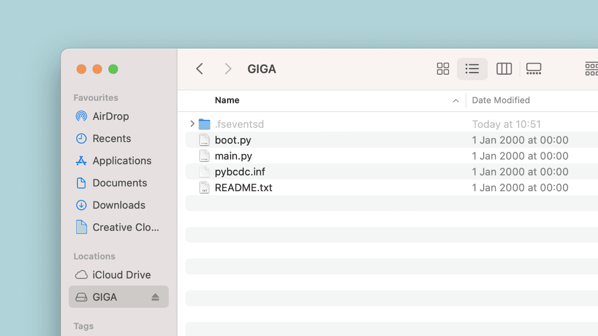 5. Reset the board by clicking the reset button (just once). You should now be able to view and access some of the GIGA R1 boards onboard storage as a mass storage device in your file manager.