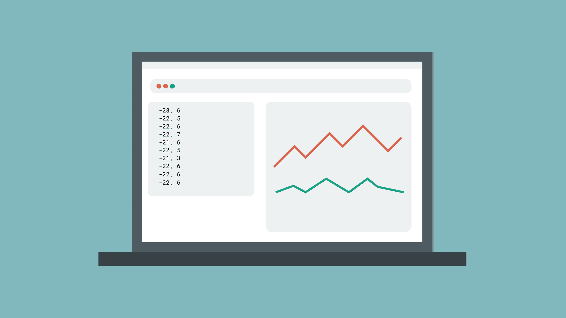 When we have finished recording, we simply remove the SD card and plug it into a computer. The data has now nicely been logged, and these values can easily be converted into a graph. We can then for example see the pattern of temperature going up and down and the wind increasing.