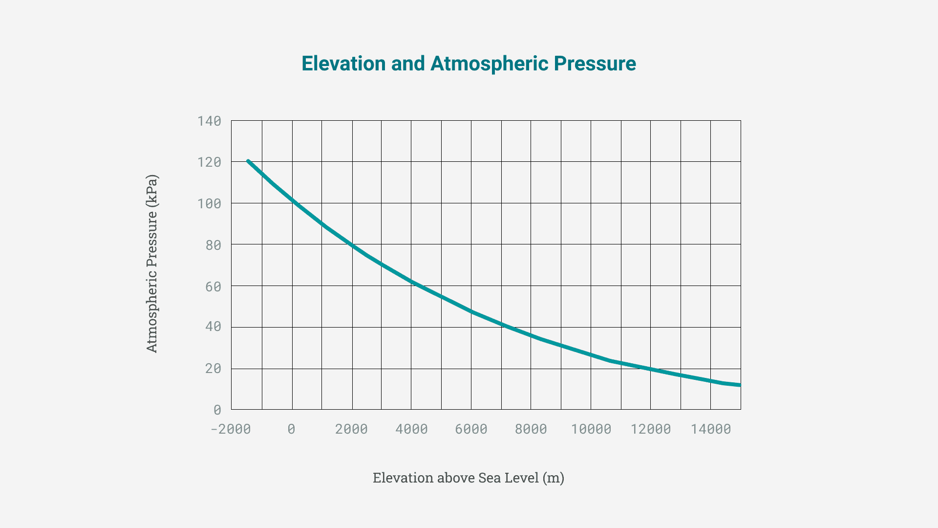 This graph shows the mathematical relationship between atmospheric pressure and elevation above sea level.