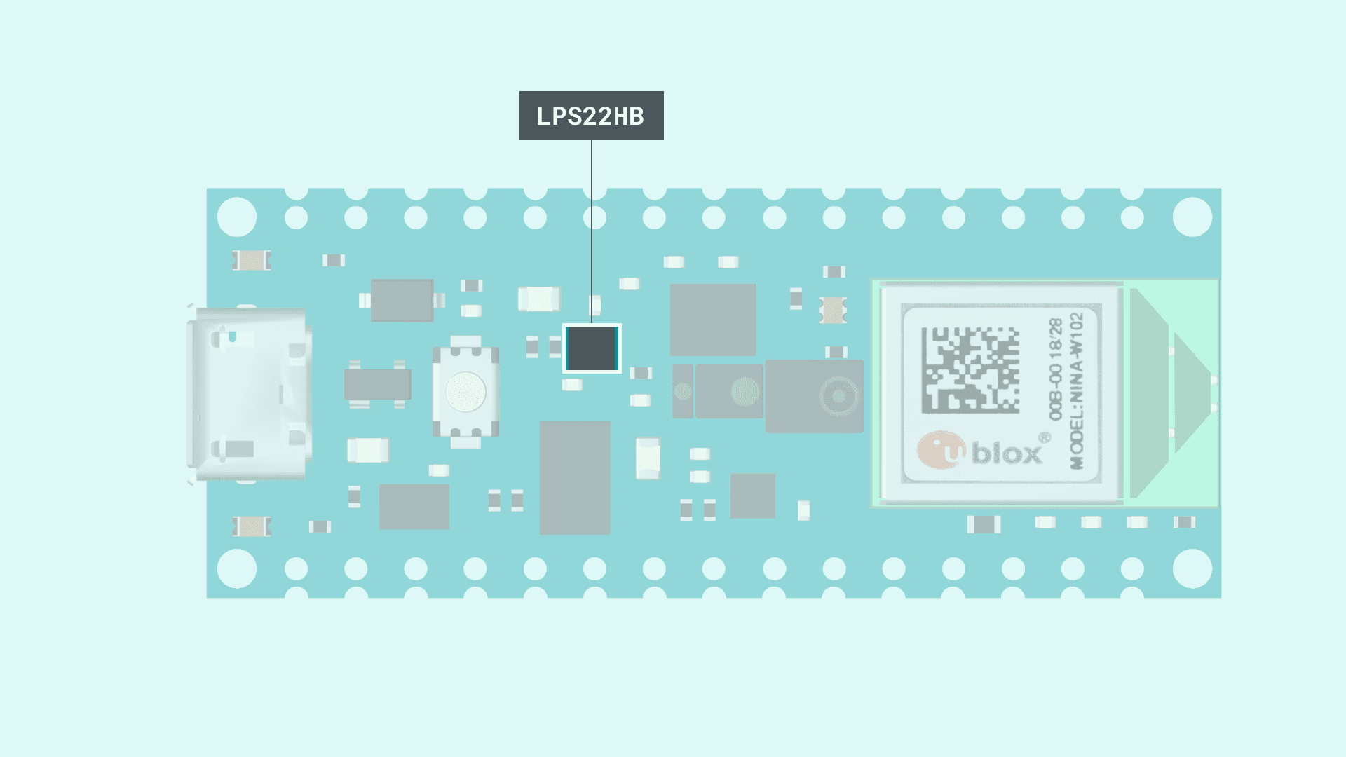 The LPS22HB picks up on barometric pressure and allows for a 24-bit pressure data output between 260 to 1260 hPa. This data can also be processed to calculate the height above sea level of the current location.