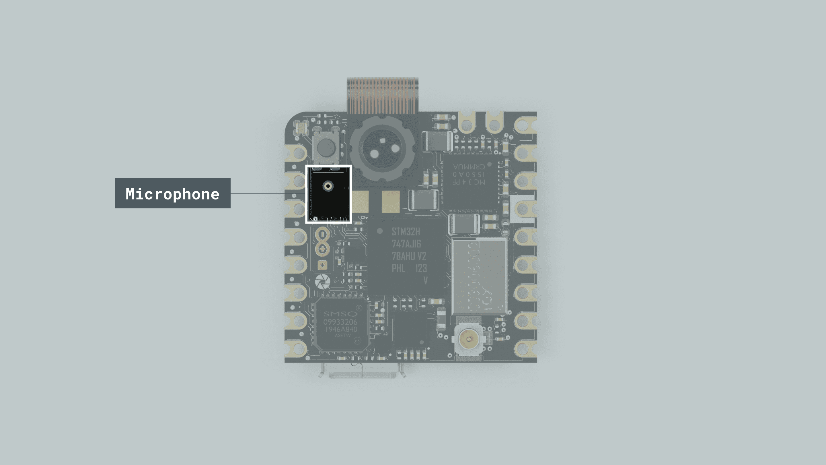 - Digital Microphone: the MP34DT05 digital MEMS microphone (U6) is omnidirectional and operates via a capacitive sensing element with a high (64 dB) signal-to-noise ratio. The sensing element, capable of detecting acoustic waves, is manufactured using a specialized silicon micromachining process dedicated to audio sensors production.