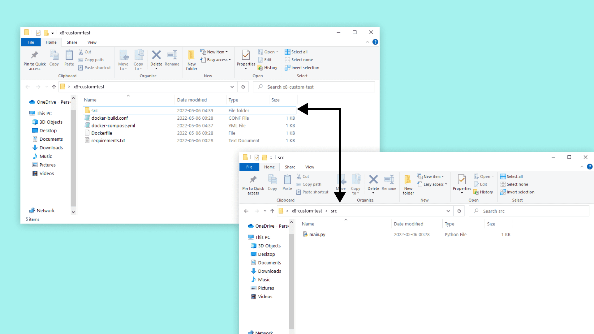 To create the container, we need to collect the necessary files. Creating a folder called x8-custom-test, the following files need to be in the folder: