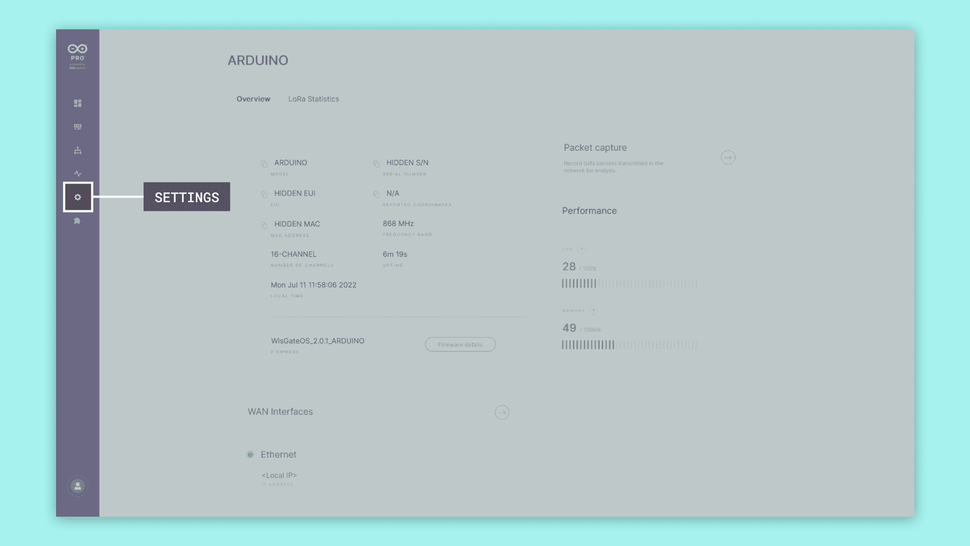 On the WisGate Dashboard, open the Settings page and click on the "Firmware" tab.